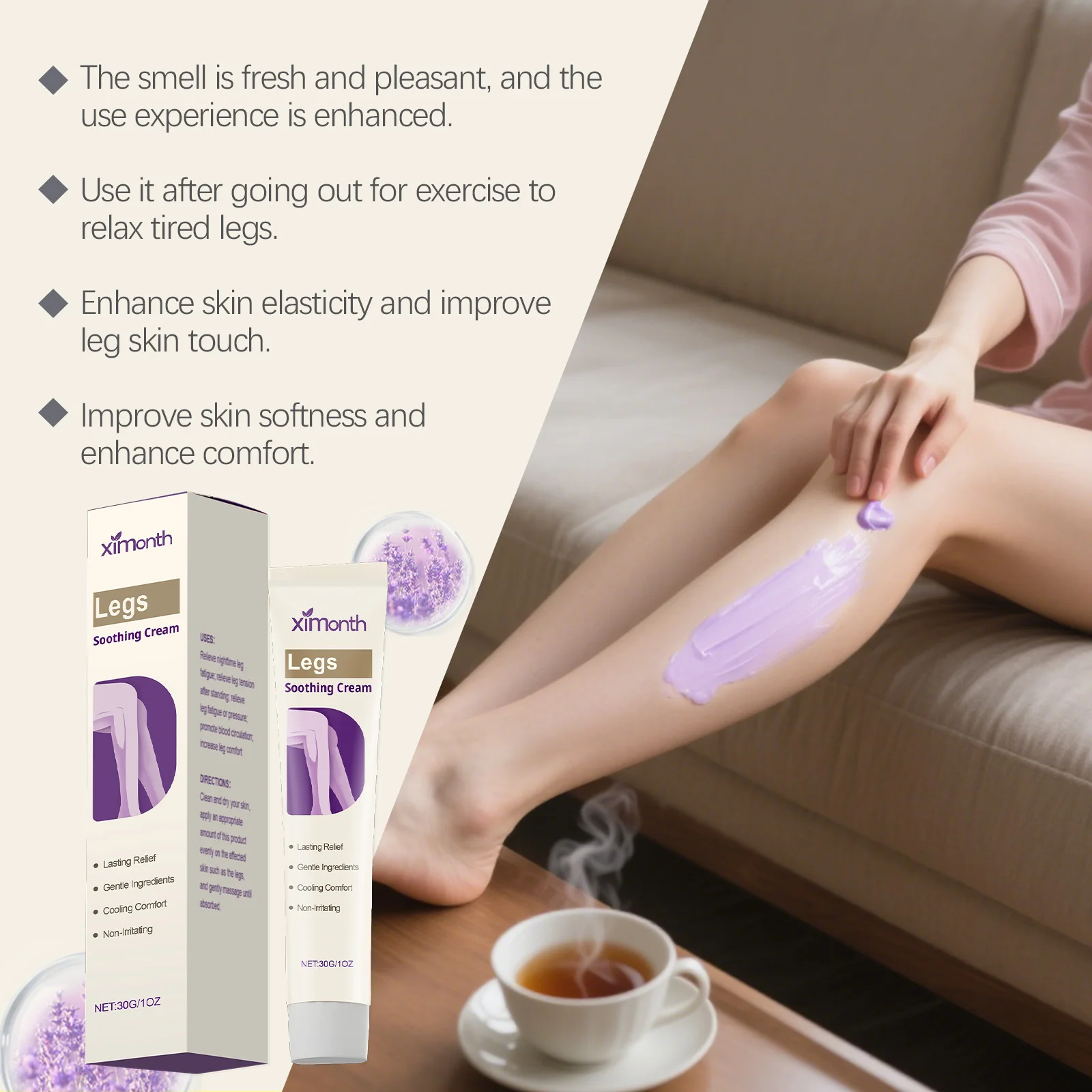 This leg soothing cream provides relief from muscle pain, soreness, and swelling while helping to moisturize and smooth the skin. Designed to support leg recovery, it also aids in alleviating discomfort associated with varicose veins and fatigue. Lightweight and refreshing, the cream absorbs quickly, leaving legs feeling rejuvenated and comfortable. Ideal for daily use after exercise, long periods of standing, or anytime extra leg care is needed.